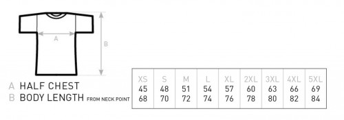 White print of front of a black B&C tee shirt.
